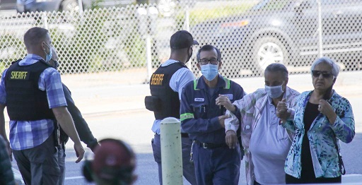 5月26日,在美國加利福尼亞州圣何塞,人們在槍擊事件后前往臨時(shí)設(shè)立的安全地點(diǎn)。新華社發(fā)(董旭東攝)
