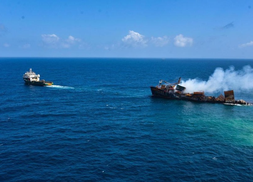 6月2日,斯里蘭卡總統(tǒng)戈塔巴雅下令將起火貨船“X-PRESS PEARL”號拖向遠(yuǎn)離科倫坡港的深海區(qū),以防引發(fā)更大的環(huán)境災(zāi)難?!癤-PRESS PEARL”號貨船5月20日抵達(dá)科倫坡港西北約9.5海里錨地時發(fā)出火警求救信號。斯里蘭卡海洋環(huán)境保護(hù)局官員5月28日表示,在科倫坡港附近起火燃燒的“X-PRESS PEARL”號貨船預(yù)計將會引發(fā)嚴(yán)重環(huán)境災(zāi)難。新華社發(fā)(斯里蘭卡空軍媒體處供圖)