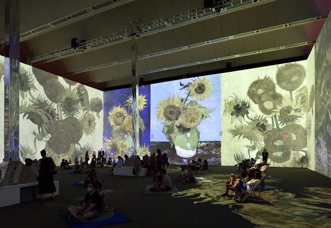 人民網訊 當?shù)貢r間6月5日,美國紐約曼哈頓,當?shù)嘏e行梵高藝術沉浸式體驗展覽。