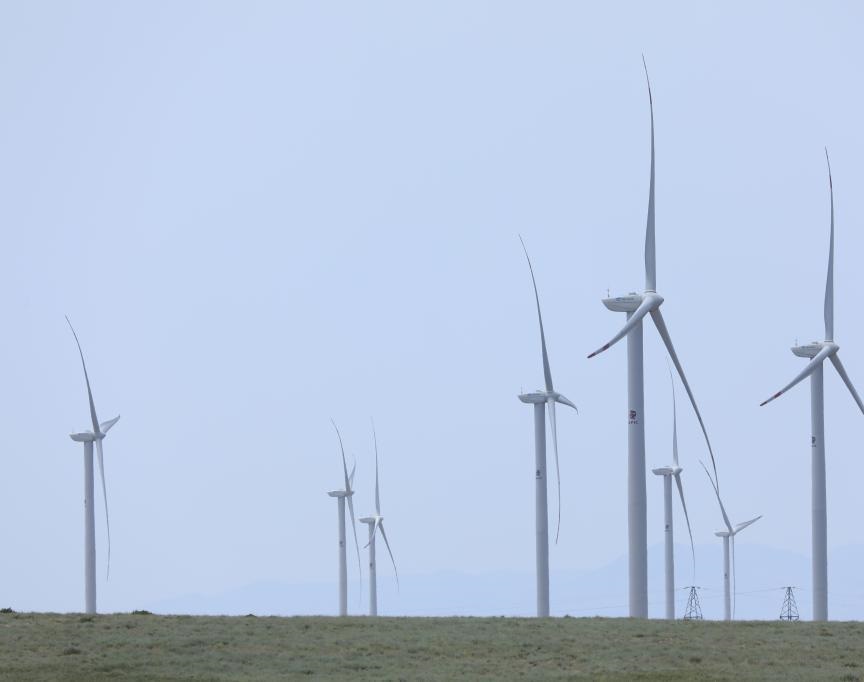 這是5月24日在哈薩克斯坦扎納塔斯拍攝的風(fēng)電場的風(fēng)機(jī)。新華社發(fā)(奧斯潘諾夫攝)
