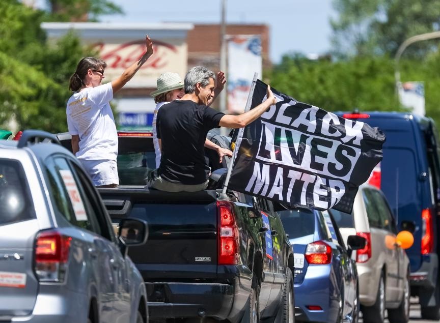 6月19日,民眾在美國伊利諾伊州埃文斯頓參加六月節(jié)慶?;顒?。新華社發(fā)(喬爾·萊納攝)
