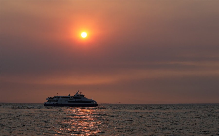 人民網(wǎng)訊 當(dāng)?shù)貢r間8月6日,土耳其日落橙光滿天,海上風(fēng)景美如畫。