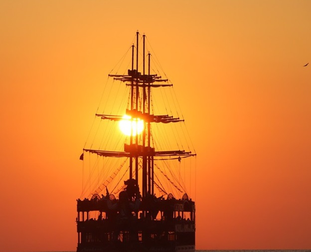 人民網(wǎng)訊 當(dāng)?shù)貢r(shí)間8月10日,土耳其日落時(shí)分,一艘帆船的剪影美如畫。