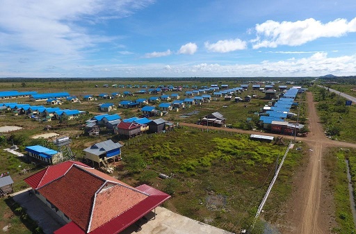 這張2017年11月23日拍攝的資料照片顯示的是,柬埔寨上丁省桑河二級(jí)水電站的移民村里項(xiàng)目公司為移民蓋的新房。新華社發(fā)(桑河二級(jí)水電有限公司供圖)
