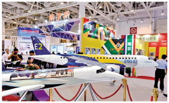 9月8日,2021金磚國家新工業(yè)革命展在廈門開幕。圖為在展覽上拍攝的參展飛機模型。 新華社發(fā)