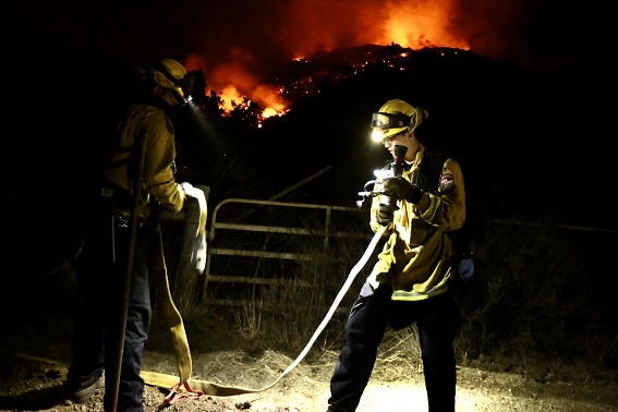 10月13日,消防員在美國加利福尼亞州圣巴巴拉縣山火區(qū)域工作。