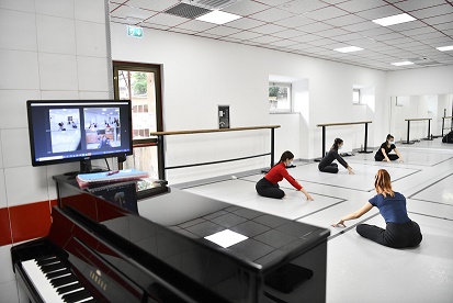 意大利羅馬國(guó)家舞蹈學(xué)院于近日開啟新學(xué)年,課程通過(guò)線上線下相結(jié)合的方式開展。學(xué)生參加線下課時(shí)必須遵守佩戴口罩、保持社交距離等防疫規(guī)定,而因疫情不能到場(chǎng)的教師和學(xué)生可通過(guò)網(wǎng)絡(luò)形式參與。