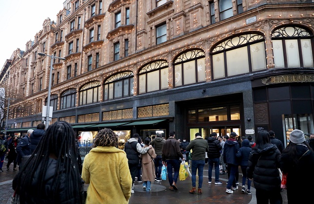 12月26日,人們走向英國倫敦的哈羅德百貨商店。