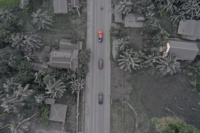 6月5日,菲律賓索索貢省的一個城鎮(zhèn)被布盧桑火山噴發(fā)的火山灰覆蓋(無人機照片)。