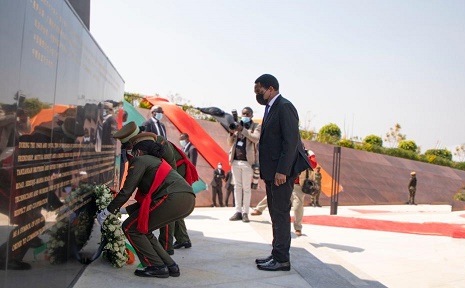 希奇萊馬當(dāng)天參觀了坦贊鐵路紀念園,并向為修建坦贊鐵路等項目而犧牲的中方人員敬獻花圈。他在致辭中感謝數(shù)萬名中方人員不遠萬里赴非修建坦贊鐵路,表示振興坦贊鐵路是對英雄最好的紀念。