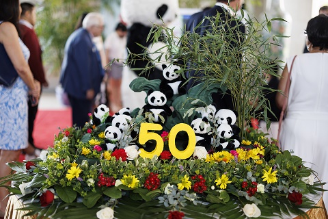 中國駐美國大使館同美國史密森學(xué)會國家動物園8月24日晚在華盛頓聯(lián)合舉辦“大熊貓之夜”招待會,慶祝大熊貓抵美50周年暨展映紀(jì)錄片《小奇跡》。