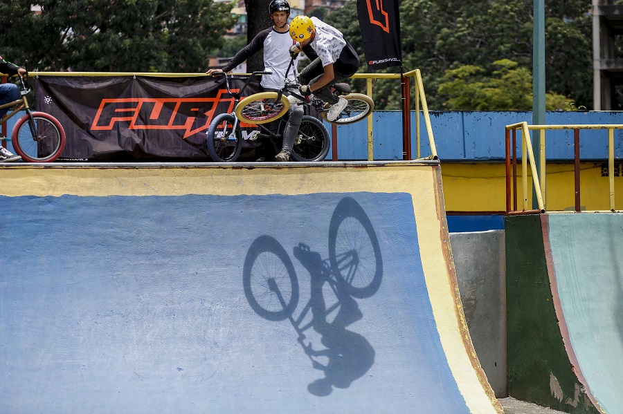 委內(nèi)瑞拉加拉加斯舉行小輪車自由式比賽