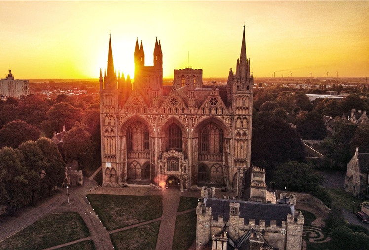 當(dāng)?shù)貢r間9月1日,英國劍橋郡彼得伯勒,太陽從彼得伯勒大教堂后升起,日出景色美麗如畫。
