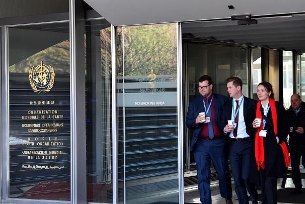 圖為30日,在瑞士日內(nèi)瓦,工作人員走出世界衛(wèi)生組織總部大樓。 新華社記者 連漪 攝