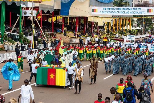 圖為20日,在喀麥隆首都雅溫得舉行的國慶慶祝活動(dòng)上,民眾列隊(duì)行進(jìn)。新華社發(fā)(科普索攝)