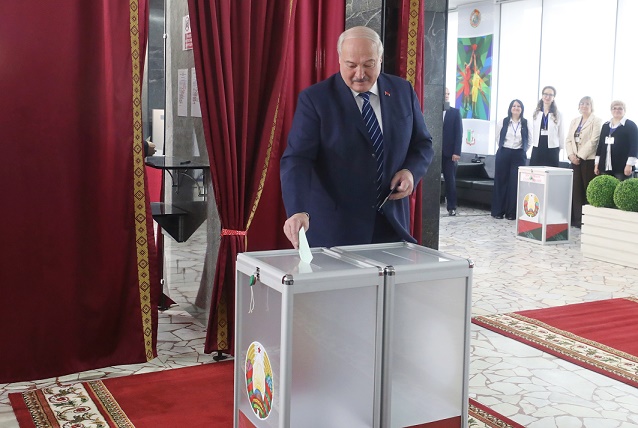 25日,白俄羅斯總統(tǒng)盧卡申科在首都明斯克一處投票站投票。新華社發(fā)(任科夫攝)