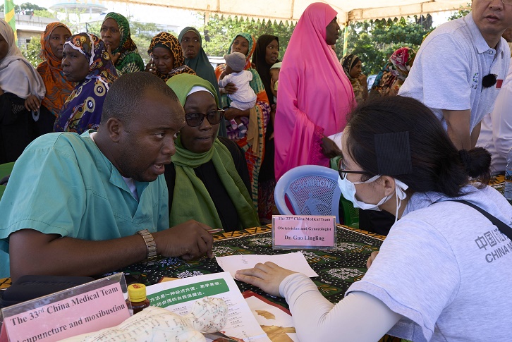 圖為第33期中國援桑給巴爾醫(yī)療隊隊員為當?shù)孛癖娞峁┙】底稍兎铡?strong>新華社發(fā)(第33期中國援桑給巴爾醫(yī)療隊供圖)