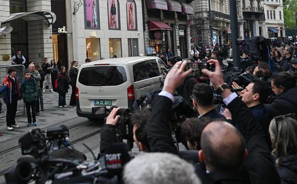 4月10日,在土耳其伊斯坦布爾,載有美國代表的車輛駛離俄羅斯駐伊斯坦布爾總領(lǐng)館。新華社記者 劉磊 攝