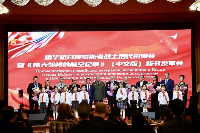招待會上舉辦了《偉大鄰邦的航空紀事》圖書中文版發(fā)布會,該書展現(xiàn)了中蘇人民在中國人民抗日戰(zhàn)爭中結(jié)下的戰(zhàn)斗友誼和蘇聯(lián)對新中國航空業(yè)發(fā)展的重要支持。來賓們觀看了新華社歐亞總分社和中國圖片社主辦的“百煉成鋼的真心朋友”主題圖片展及亞歷山德羅夫紅旗歌舞團、俄羅斯中國總商會帶來的精彩演出。使館少年兒童代表向俄老戰(zhàn)士后代獻花表達敬意。