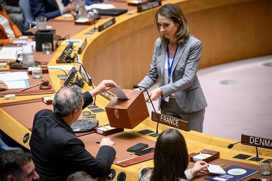 5月27日,在位于紐約的聯(lián)合國總部,聯(lián)合國安理會(huì)投票補(bǔ)選國際法院法官。新華社發(fā)(聯(lián)合國供圖/洛伊·費(fèi)利佩攝)