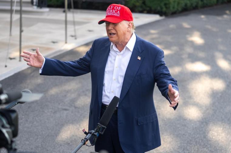 7月1日,在美國(guó)首都華盛頓白宮,美國(guó)總統(tǒng)特朗普在登機(jī)前回答記者提問。新華社記者胡友松攝