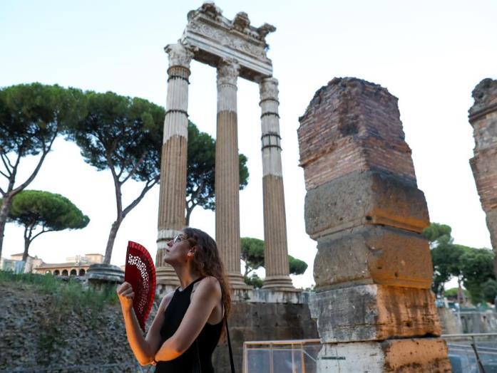 7月5日傍晚,在意大利羅馬,游客在古羅馬廣場(chǎng)參觀。