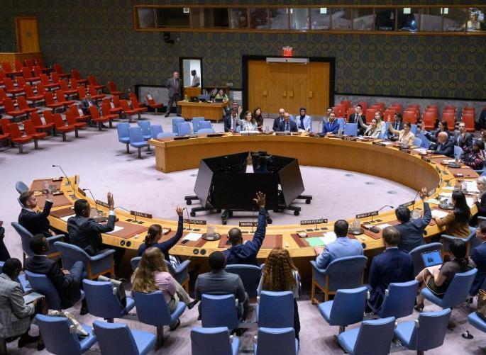 這是7月15日在位于紐約的聯(lián)合國總部拍攝的安理會投票表決現(xiàn)場。新華社發(fā)(聯(lián)合國供圖/洛伊·費(fèi)利佩攝)