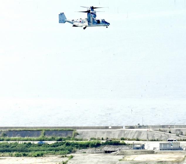 圖為當(dāng)?shù)貢r(shí)間2025年7月9日,日本佐賀市,一架日本陸上自衛(wèi)隊(duì)V-22“魚(yú)鷹”運(yùn)輸機(jī)抵達(dá)陸上自衛(wèi)隊(duì)新啟用的佐賀駐地。 CFP供圖