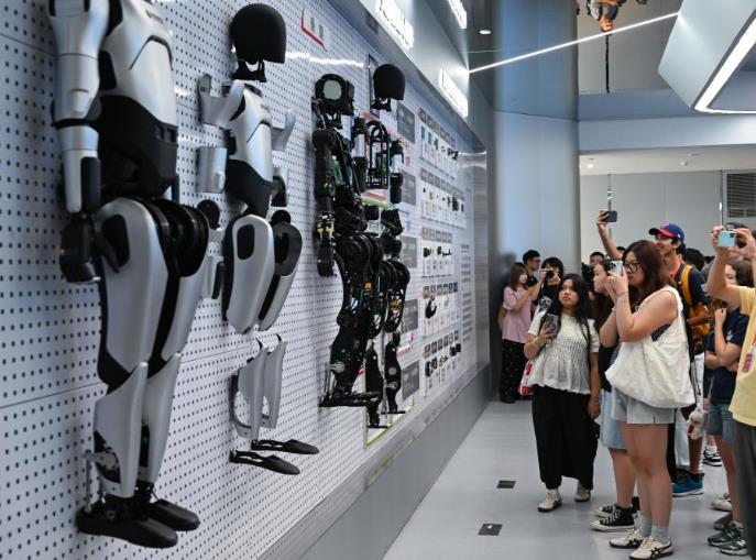 7月29日,美國飛虎隊(duì)夏令營代表團(tuán)成員在湖北省武漢市湖北人形機(jī)器人創(chuàng)新中心參觀。