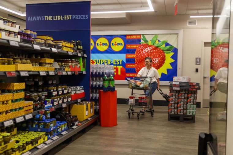 8月12日, 一名顧客在美國紐約市布魯克林區(qū)一個雜貨店進行采購。新華社發(fā)(郭克攝)