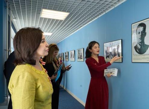 9月2日,在俄羅斯符拉迪沃斯托克舉辦的“百煉成鋼的真心朋友”——紀念中國人民抗日戰(zhàn)爭暨世界反法西斯戰(zhàn)爭勝利80周年圖片展上,工作人員為參觀者講解。新華社發(fā)(郭飛洲攝)