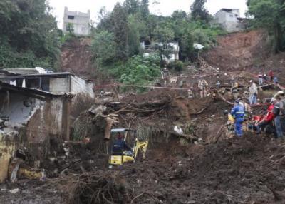 10月13日,在墨西哥普埃布拉州瓦烏奇南戈市,救援人員在強降雨引發(fā)的山體滑坡現(xiàn)場進行搜救。新華社發(fā)(弗朗西斯科·卡涅多攝)