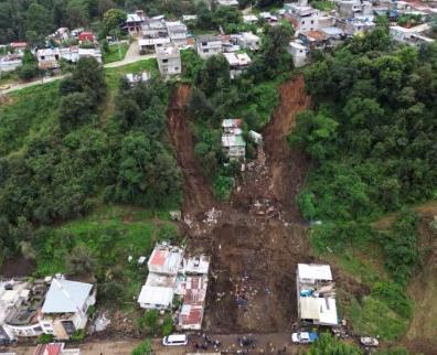 這是10月13日在墨西哥普埃布拉州瓦烏奇南戈市拍攝的降雨引發(fā)的山體滑坡現(xiàn)場(無人機照片)。新華社發(fā)(弗朗西斯科·卡涅多攝)