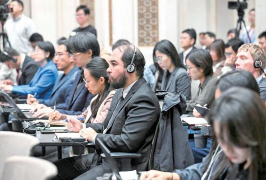 ▲ 10月24日,中外記者參加介紹和解讀中共二十屆四中全會精神新聞發(fā)布會。 新華社發(fā)