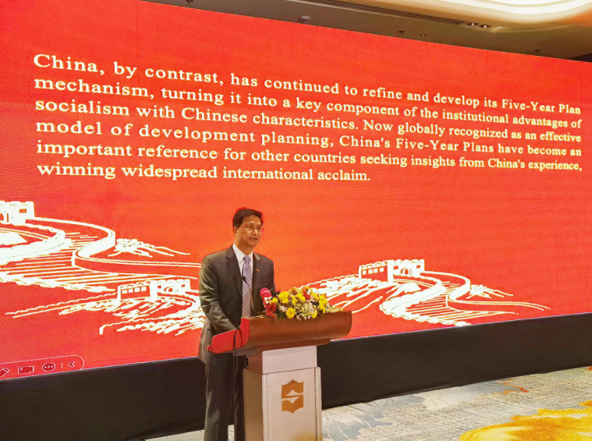 戚振宏表示,中國共產黨二十屆四中全會審議通過的“十五五”規(guī)劃建議,是中國今后五年經濟社會發(fā)展的宏偉藍圖,也展示了中國與世界合作共贏的美好愿景??茖W制定和接續(xù)實施五年規(guī)劃,是中國共產黨治國理政一條重要經驗,也是中國特色社會主義一個重要政治優(yōu)勢。中國五年規(guī)劃是被實踐證明了的成功發(fā)展規(guī)劃,成為世界各國借鑒中國經驗的重要方面,贏得廣泛國際贊譽。戚振宏介紹了中國“十四五”時期取得的重大成就及“十五五”規(guī)劃提出的未來五年中國經濟社會發(fā)展七個主要目標,強調中國將以新發(fā)展為世界各國提供新機遇。戚振宏指出,與中國同行就是與機遇同行,相信中國就是相信明天,投資中國就是投資未來。中斯傳統(tǒng)友誼源遠流長,兩國是發(fā)展振興的同路人、合作共贏的好伙伴。斯里蘭卡“繁榮國家、幸福生活”美好愿景以及“清潔蘭卡”“數字轉型”和“鄉(xiāng)村發(fā)展”三大規(guī)劃與中國“十五五”規(guī)劃中有關內容高度契合,中方愿同斯方加強發(fā)展戰(zhàn)略對接,在高質量共建“一帶一路”框架下,共同拓展港口經濟、現代農業(yè)、數字經濟、綠色經濟、旅游等合作,助力斯里蘭卡經濟社會發(fā)展,為兩國人民創(chuàng)造更多福祉,攜手打造中斯命運共同體。