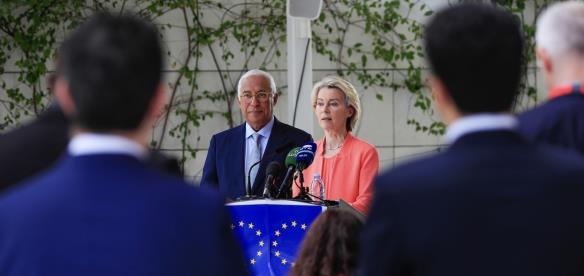 當(dāng)?shù)貢r(shí)間11月24日,歐洲理事會(huì)主席科斯塔(左)和歐盟委員會(huì)主席馮德萊恩就烏克蘭問題舉行聯(lián)合發(fā)布會(huì)。 CFP供圖