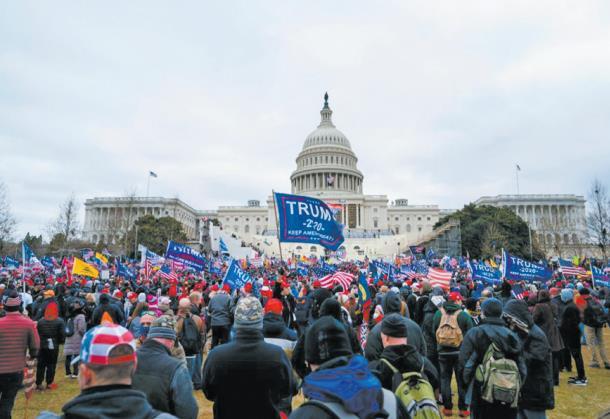 2021年1月6日,在美國(guó)首都華盛頓的國(guó)會(huì)大廈前,特朗普的支持者舉行示威游行。 新華社記者 劉杰攝