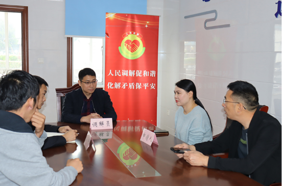 圖為宋耀東(中)主持一起勞資糾紛調(diào)解。常州市天寧區(qū)司法局供圖