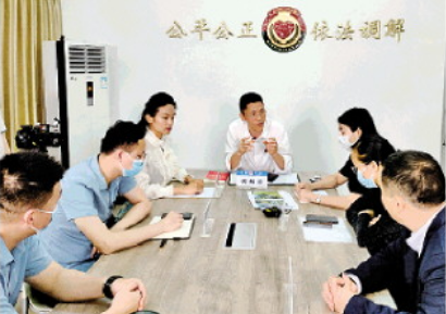 圖為馬勝佼(中)正在組織調(diào)解。 鳳陽(yáng)司法所供圖