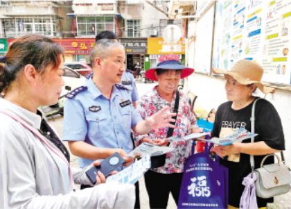 圖為王小平(左二)深入社區(qū)開展反詐宣傳。 曹新菊 攝