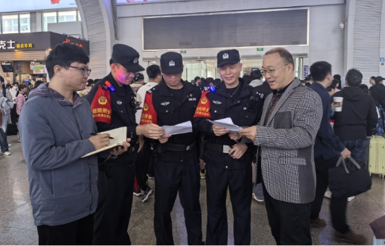 “春運期間,我們專門組建了由5名民警、6名輔警組成的‘鐵鷹’小分隊,緊盯霸座、猥褻、抽煙等影響旅客出行安全的突出治安問題,嚴打電信網(wǎng)絡詐騙等違法犯罪,全力壓發(fā)案、打現(xiàn)行、保民安?!焙?跂|站派出所教導員呂海瑞告訴記者。
