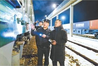 當(dāng)吳浩趕到執(zhí)勤點時,當(dāng)班執(zhí)勤的檢查員民警王帥和王永發(fā)已身著輕便的執(zhí)勤服、攜帶執(zhí)勤裝備,整齊地站在中歐班列一側(cè),準備執(zhí)行檢查任務(wù)。