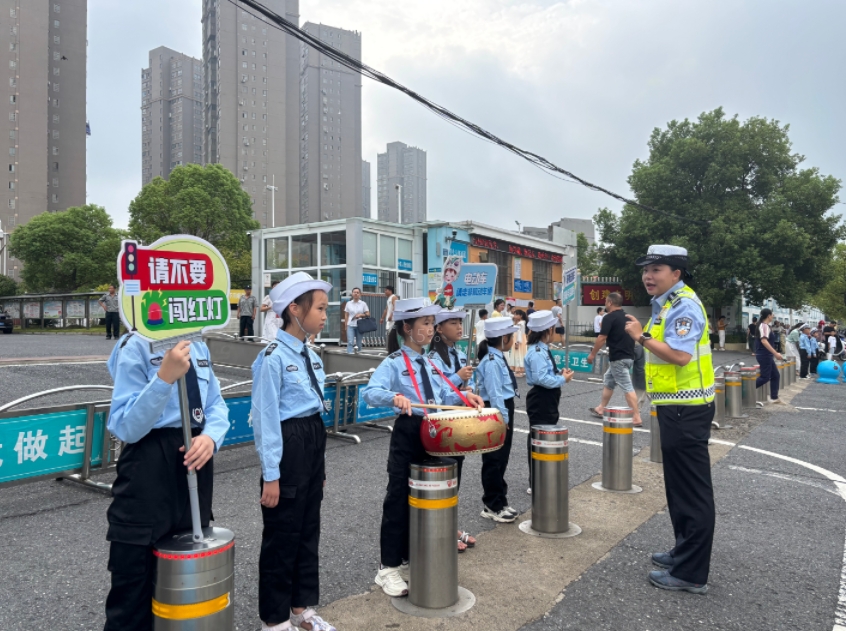 秋季開學伊始,江西省高安市公安局交管大隊組織民輔警和“少年交警隊”隊員在轄區(qū)校園門口維護秩序,充分發(fā)揮“家+校+警”機制作用,通過“小手拉大手”帶動全社會共同關(guān)注交通安全。