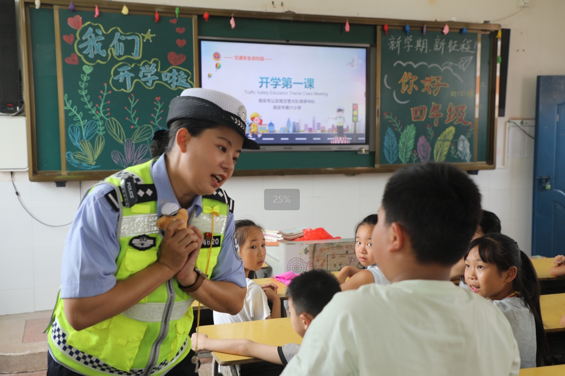 圖為9月1日,民警走進高安市第六小學講授“開學第一課”。