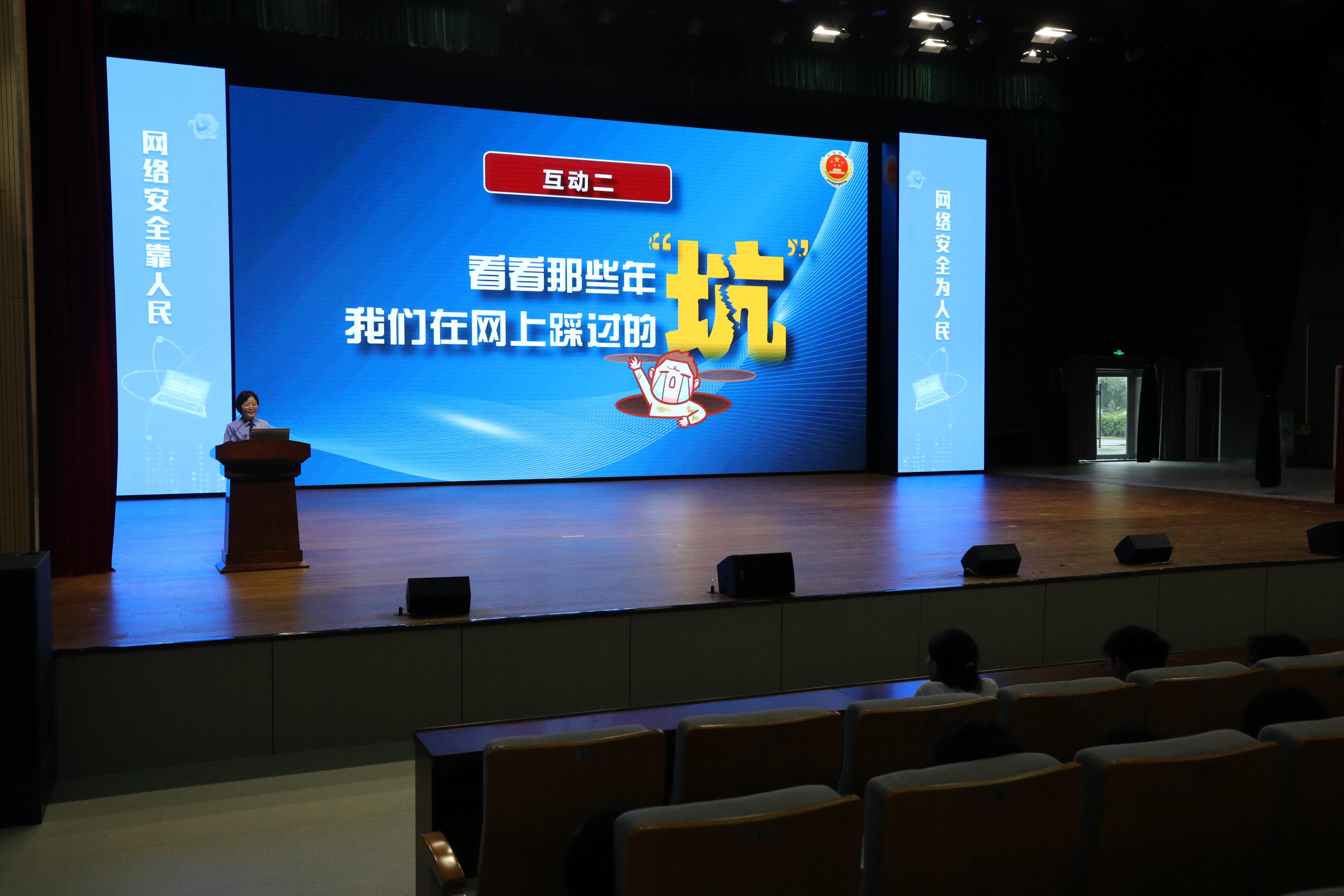 “高價收卡不心動,違法忙咱可不幫!”“網(wǎng)絡(luò)欺凌非兒戲,法律紅線莫觸撞!”近日,江蘇省宿遷經(jīng)濟(jì)技術(shù)開發(fā)區(qū)人民檢察院在宿遷市衛(wèi)生中等專業(yè)學(xué)校報告廳內(nèi),為近800名師生帶來一場主題為“守護(hù)青春e空間,網(wǎng)絡(luò)安全伴我行”的法治教育課,用生動形式傳遞網(wǎng)絡(luò)安全知識,為青少年筑牢法治“防火墻”。