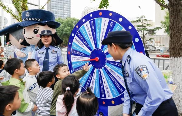 圖為民警通過趣味轉盤向市南區(qū)悅府幼兒園小朋友普及日常食品安全知識