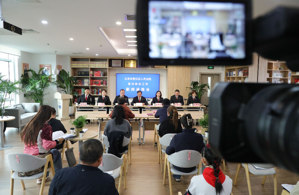 圖為密云區(qū)法院召開(kāi)新聞發(fā)布會(huì),向社會(huì)通報(bào)普法驛站建設(shè)情況。