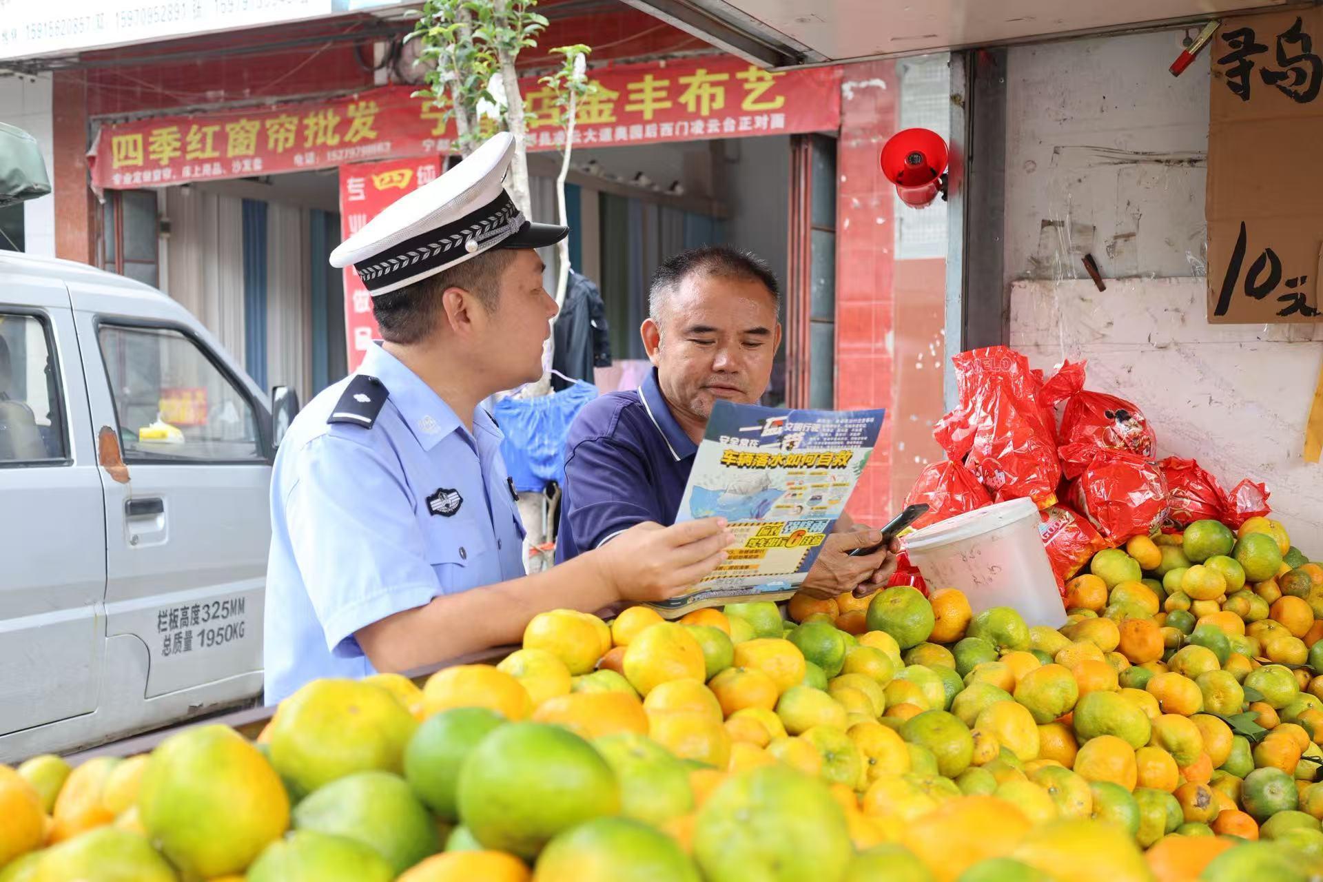 圖為近日,民警來到黃石鎮(zhèn)向群眾宣傳交通安全知識。