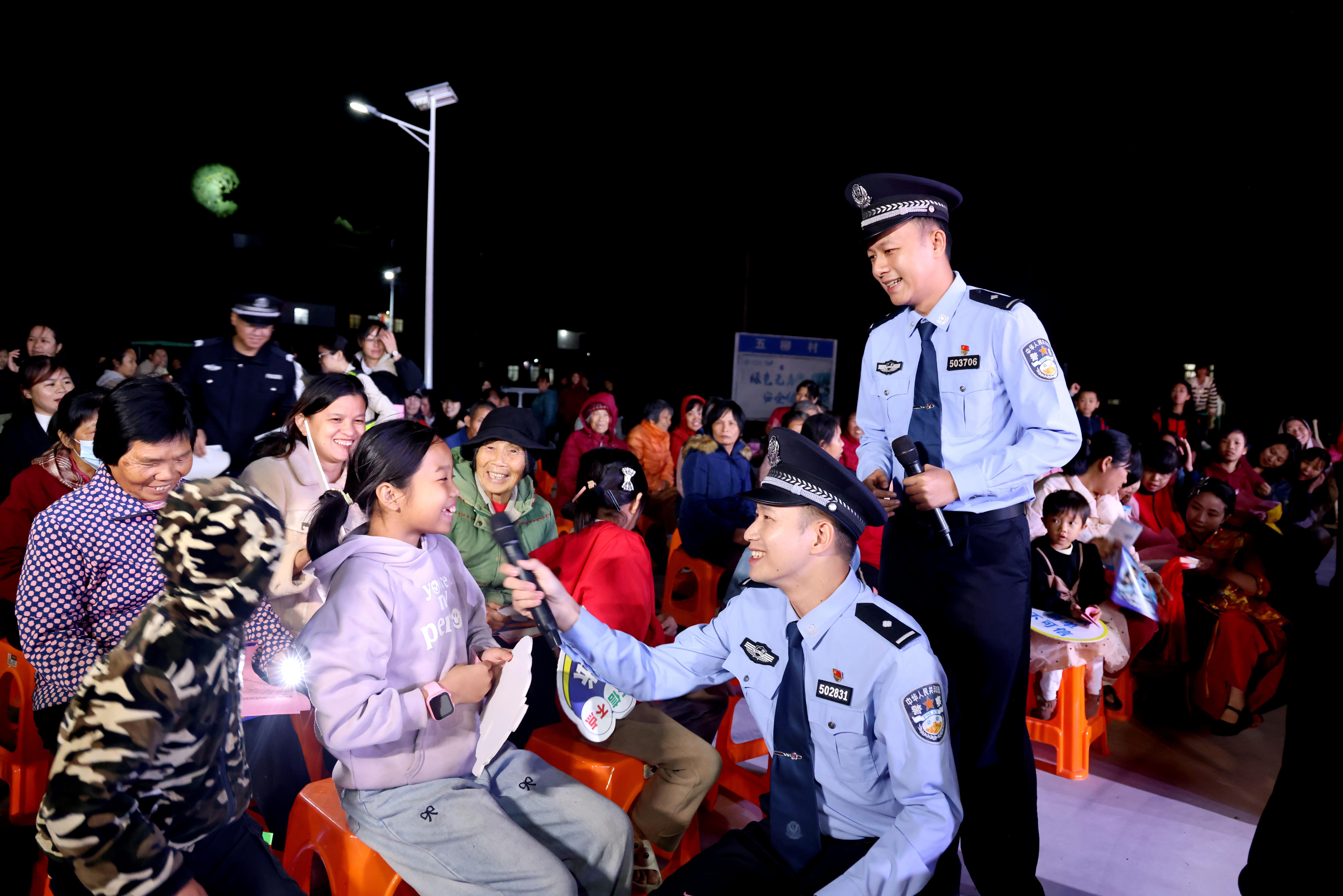 晚會(huì)期間,民警將禁毒反詐知識(shí)融入流行歌曲改編,并設(shè)置互動(dòng)問(wèn)答環(huán)節(jié)。針對(duì)未能進(jìn)入主會(huì)場(chǎng)的觀眾,民警延伸宣傳觸角,場(chǎng)外同步發(fā)放、講解宣傳資料。“這樣的宣傳我們記得?。〖瓤戳斯?jié)目,又學(xué)了知識(shí)?!贝迕窭畲鬆斦f(shuō)。
