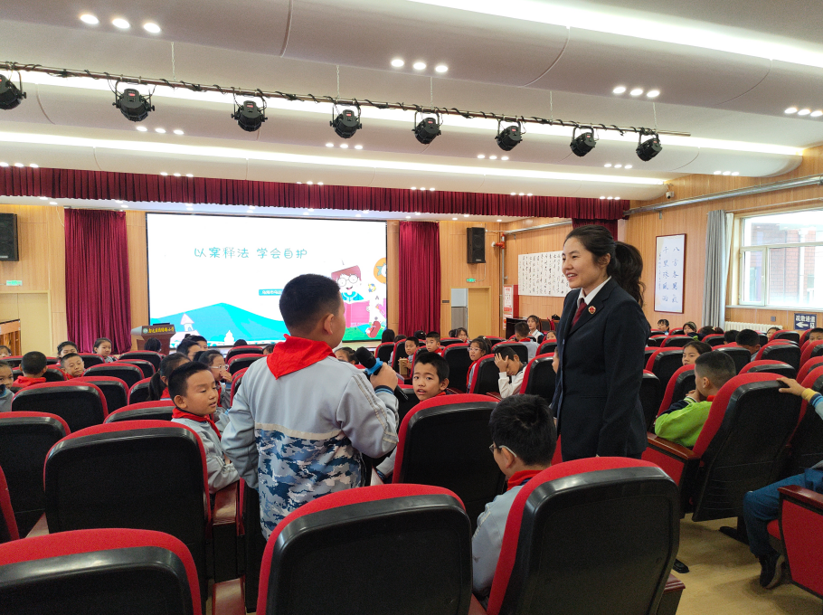 圖為“流動法律超市”開進烏達區(qū)團結(jié)路小學,向?qū)W生們開展法治宣傳活動。